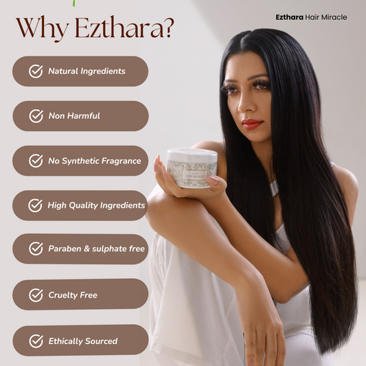 Introducing ezthara hair miracle - a true masterpiece crafted with blend of high end oils & minerals to create product that is sure to captive you. Our hair cream promotes healthy hair growth by increasing blood circulation to the scalp & maintaining the scalp PH. Lightweight and non sticky in texture, our hair cream absorbs quickly into the scalp without leaving any oily residue. Strengthens hair from roots this prevents breakage of hair. Controls dandruff & reduces premature greying. Made with high quality natural ingredients & safe to use. Safe for colored, chemically treated hair, this cream suits all hair types and is free from harmful chemicals and toxins. Shop our groundbreaking hair miracle cream to build the foundation of healthy hair, from scalp to ends.